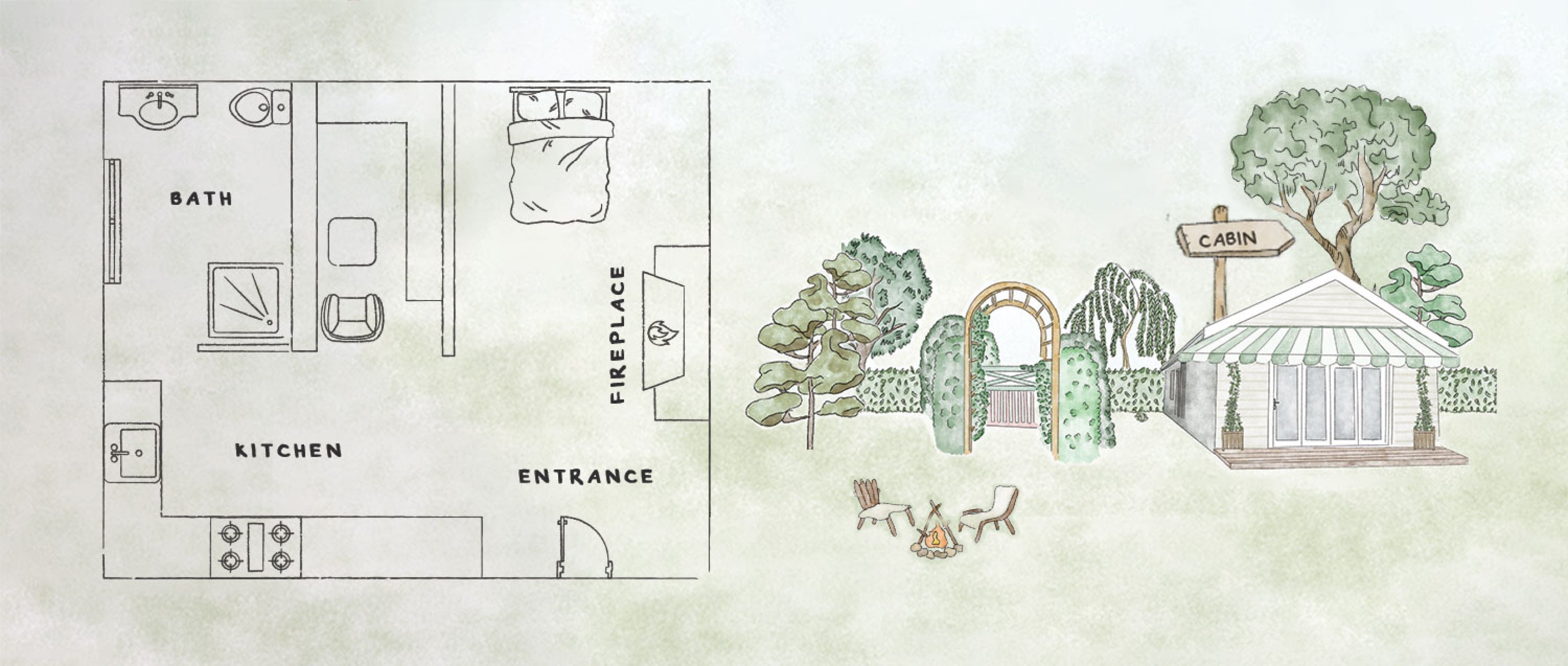 It features two beautifully styled bedrooms that has its own living space and kitchen. The Cabin is available to be booked separately Tuesday - Thursday.