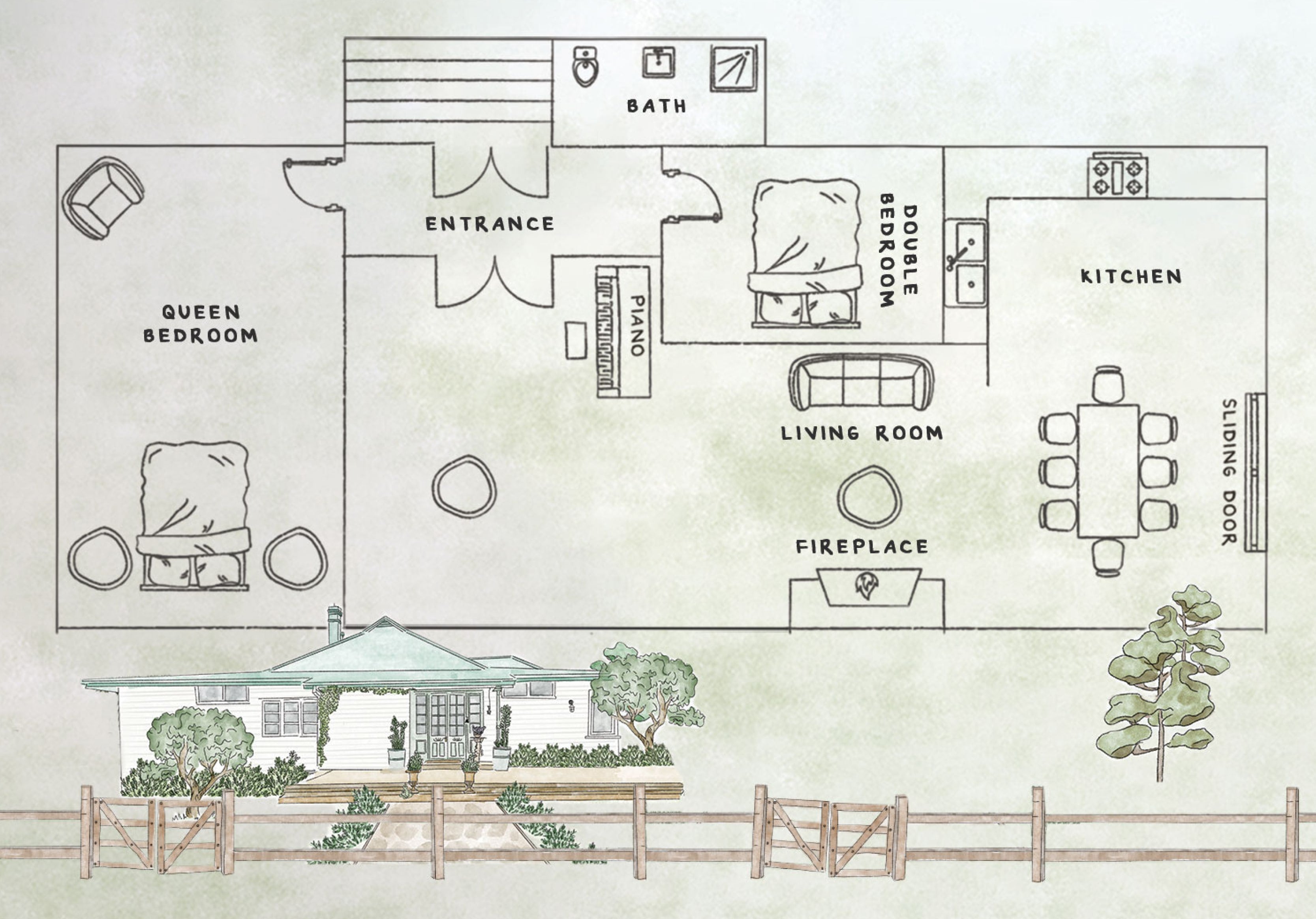 It features two beautifully styled bedrooms that has its own living space and kitchen. The Front House is available to be booked separately Tuesday - Thursday.